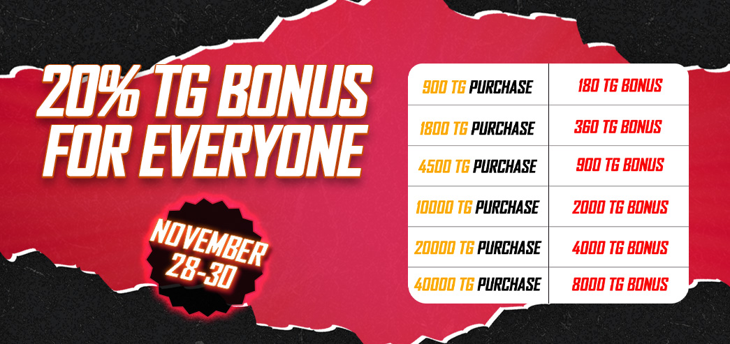 Players who load 20,000 TG will receive a 4,000 TG bonus, for a total of 24,000 TG.
