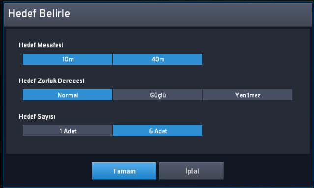 Hedef Zorluk Derecesi ile hedeflerin zorluk derecesi seçilebiliyor