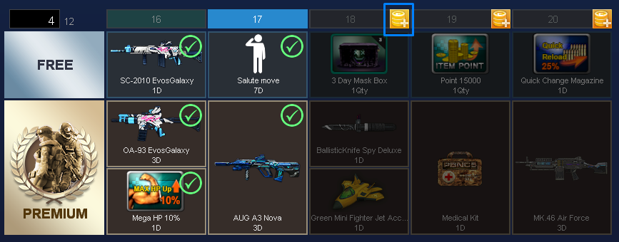 Each level has special rewards for both free and premium users.