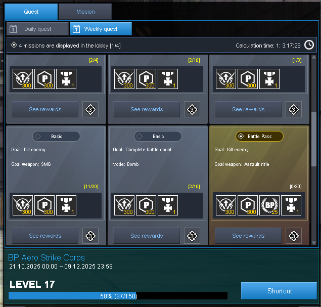 If you have the Battle Pass Premium, there are 2 weekly missions you can complete.