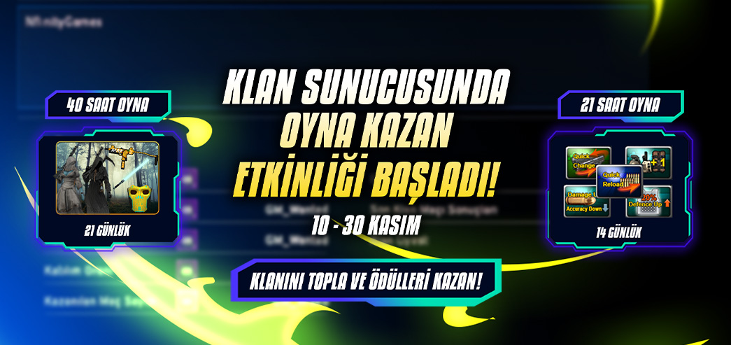 10 Kasım’da başlayan Klan Sunucusuna özel Oyna Kazan etkinliği, en aktif oyunculara özel birbirinden değerli ödüller sunuyor. Tek yapman gereken şey: oyunda kalmak ve savaşmak!
