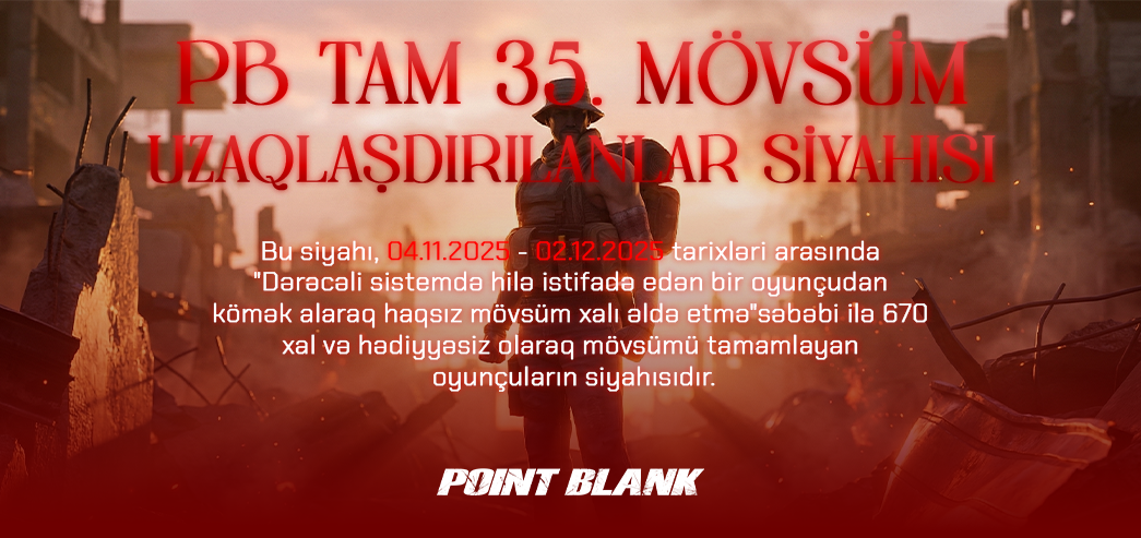 PB TAM 35. Mövsüm boyunca hilə istifadə edənləri aşkarlanması səylərinə görə Moderator dostlarımıza və siz dəyərli oyunçularımıza təşəkkür edirik.