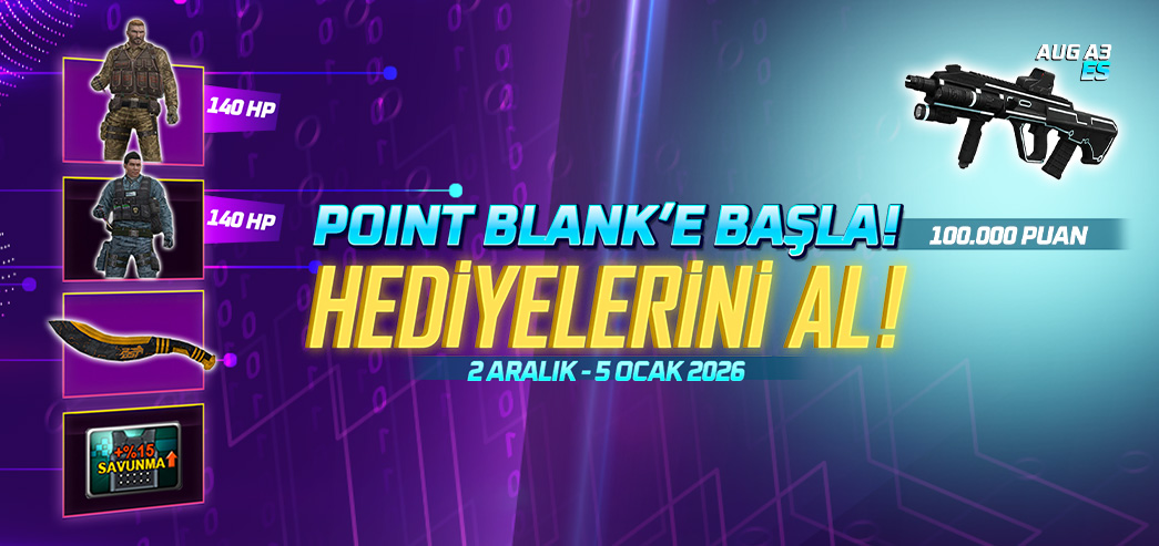 2 Kasım - 5 Ocak tarihleri arasında Point Blank'e yeni kayıt olan ve oyuna giriş yapan oyuncularımızı harika ürünler bekliyor!