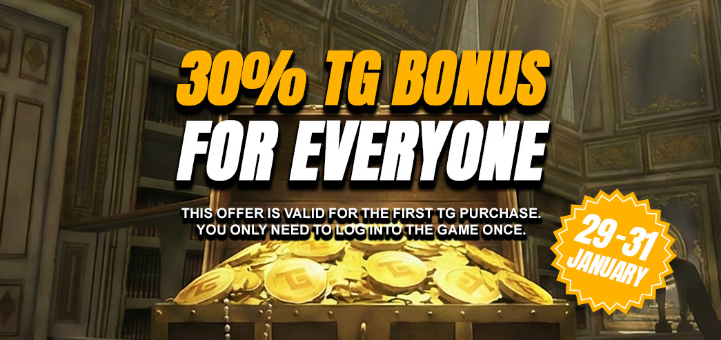 Win a 30% BONUS on your first TG charge between 29 - 31 January!