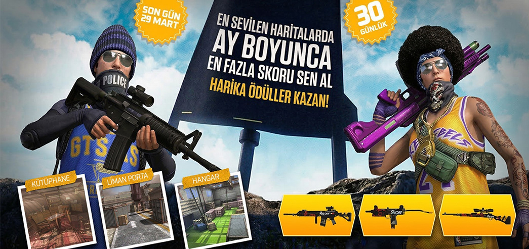 Belirtilen haritalarda Step-UP modunda oynayıp en çok kill (skor) alan ilk 5 oyuncu, 30 günlük muhteşem silahların sahibi olacak!