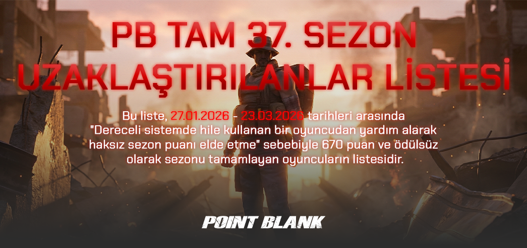 PB TAM 37. Sezon boyunca hile kullananları tespit etme çabalarından dolayı Moderatör arkadaşlarımıza ve siz değerli oyuncularımıza teşekkür ederiz.