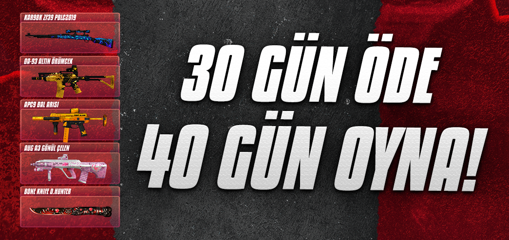 Oyun içi markette ve TAM Store’da belirli ürünlerde 40 günlük kullanım süresi, yalnızca 30 günlük fiyatına!