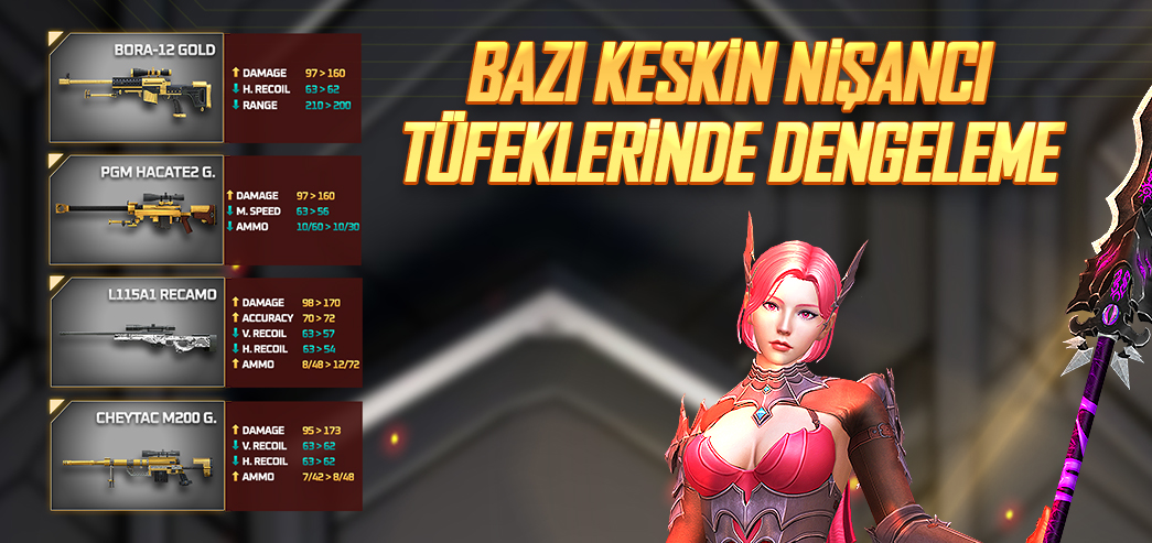 Keskin nişancı tüfeklerinin oyundaki etkisini artırmak, rekabeti çeşitlendirmek ve oyuncuları bu silah türünü daha fazla kullanmaya teşvik etmek istiyoruz.