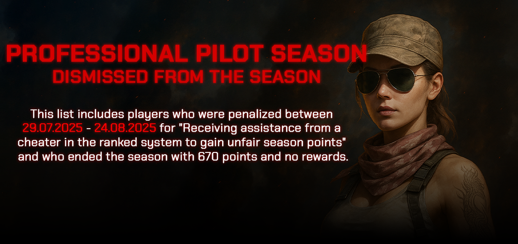 This list includes players who were penalized between 29.07.2025 - 24.08.2025 for "Receiving assistance from a cheater in the ranked system to gain unfair season points"
