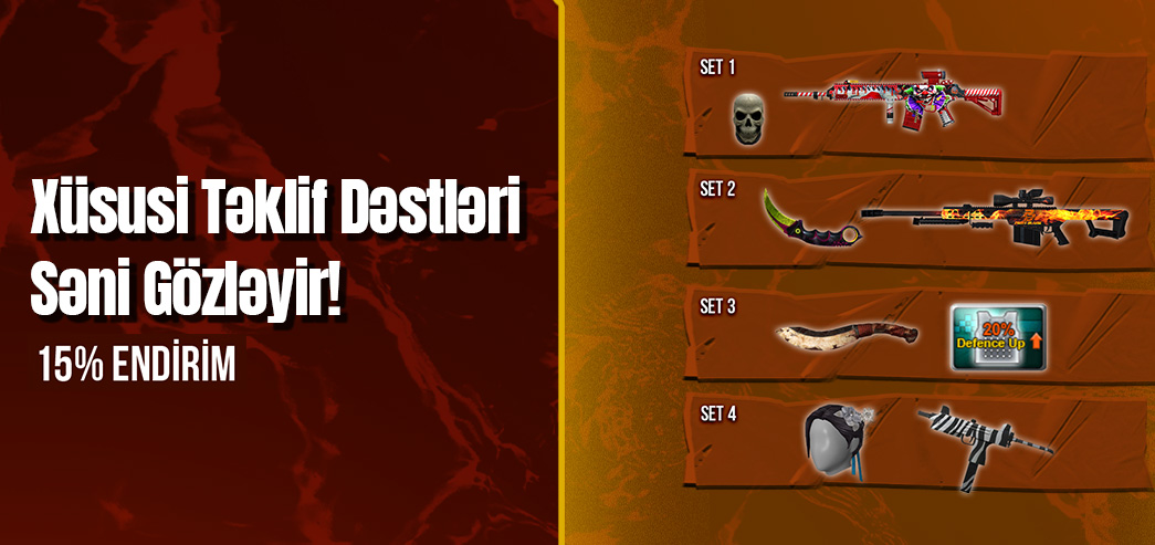 Döyüşçülərə özəl hazırladığımız 4 fərqli Özəl Təklif Dəstləri 15% endirimli olaraq həm TAM Store-da həm də oyun marketində satışda! 🎯